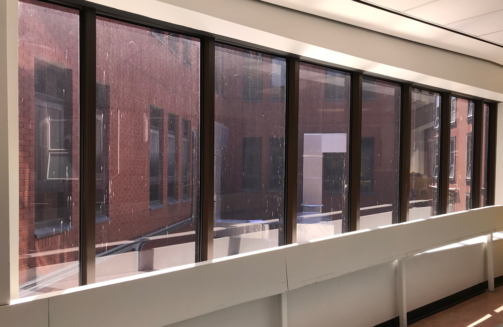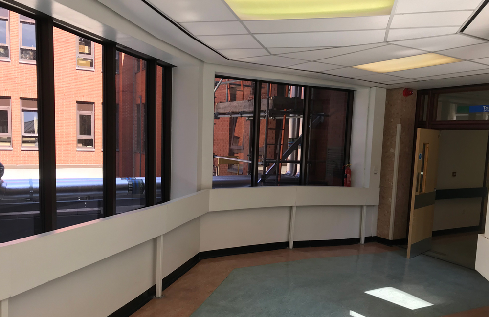 We recently installed various Digitally Printed Images onto Frosted Window Film at a Teaching Hospitals Trust to hide/disguise a plant that had recently been installed outside this passing place, at newly refurbished Wing of the Hospital.